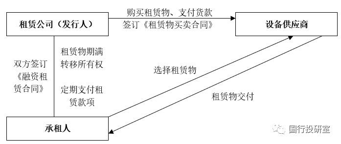 2、直接租賃則會(huì)涉及設(shè)備供應(yīng)商、租賃公司(發(fā)行人)和承租人三方,即發(fā)行人與承租人簽訂融資租賃合同,并根據(jù)承租人的要求向設(shè)備供應(yīng)商購(gòu)買承租人所需設(shè)備并支付貨款,設(shè)備運(yùn)抵承租人經(jīng)營(yíng)地并投入運(yùn)行后,承租人按融資租賃合同的相關(guān)約定定期向發(fā)行人支付租賃款項(xiàng),而租賃期滿后,發(fā)行人向承租人以名義價(jià)格轉(zhuǎn)讓相關(guān)租賃資產(chǎn)的所有權(quán)。