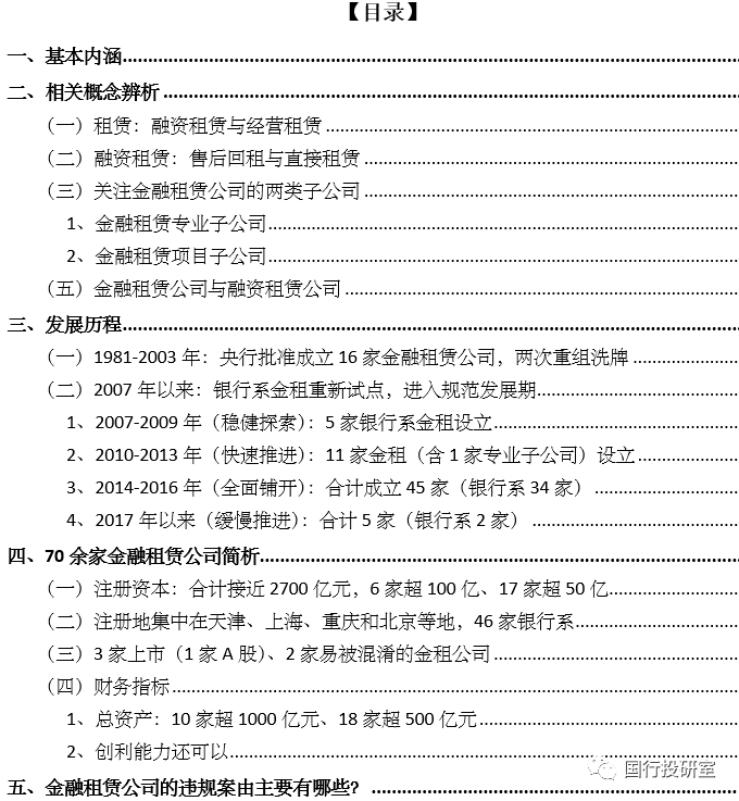 本篇報(bào)告聚焦金融租賃行業(yè)和全部70余家金融租賃公司。