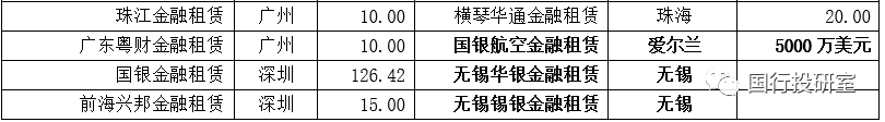 這里的特定領(lǐng)域是指金融租賃公司已開展、且運(yùn)營(yíng)相對(duì)成熟的融資租賃業(yè)務(wù)領(lǐng)域,包括飛機(jī)、船舶等。而金融租賃專業(yè)子公司也可以在境外設(shè)立,如國(guó)銀航空租賃便是注冊(cè)在愛爾蘭(注冊(cè)資本為5000萬美元)。