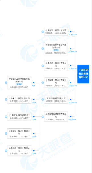 大股東為上海電氣集團,持股比例為24.32121%;二股東是信保基金,持股比例為21.53681%,機場、國盛和國際集團分別持股18.04477%,最后一點股份是一家上海維安投資管理有限公司。順便提一句,砥安公司的注冊資本為18.2億元人民幣。而翻開上海維安投資管理有限公司,注冊資本為1000萬人民幣;控股股東為信保基金,持股比例為50%,剩下的四家國企均分剩下的股權。從公告到今天成立,各方確實都在為安信重組的事情鋪路。到了這一步,那么安信信托重組事件本身也已經(jīng)是板上釘釘?shù)氖虑椋缓罄m(xù)新股東的入駐,支付的對價成為了關注的焦點。從砥安投資管理有限公司的股權分布情況來看,大股東是上海電氣集團,其他四家作為聯(lián)合收購體。上海國際集團沒能控股略顯遺憾,但是對于這樣的安排也是意料之中。上海電氣一直謀求信托牌照,現(xiàn)在看來總算是是有眉目。注意砥安和維安投資管理公司,這兩家法人代表都是這個秦懌。秦懌何許人也?上海電氣集團財務有限公司的董事長,此外還擔任多家公司的高管。在搜索目錄當中,2018年還擔任過上海電氣金融集團常務副總裁,可以判斷這是一位資深財務金融人士。
