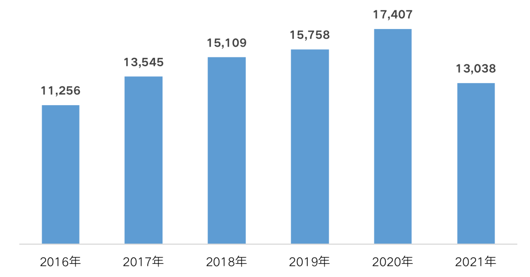 圖:2016-2021年房企融資總量情況(單位:億元)