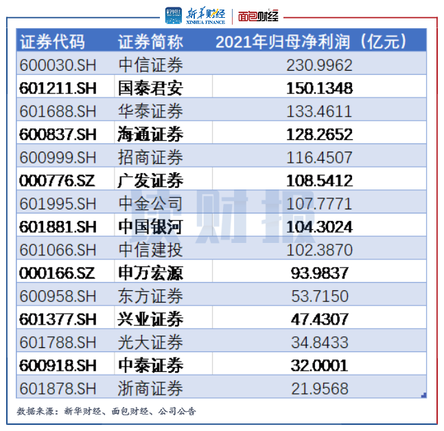 截至3月30日,共有26家上市券商發(fā)布2021年年報,其中中信證券、國泰君安、華泰證券等9家大型券商當(dāng)年的歸母凈利潤超過百億元。