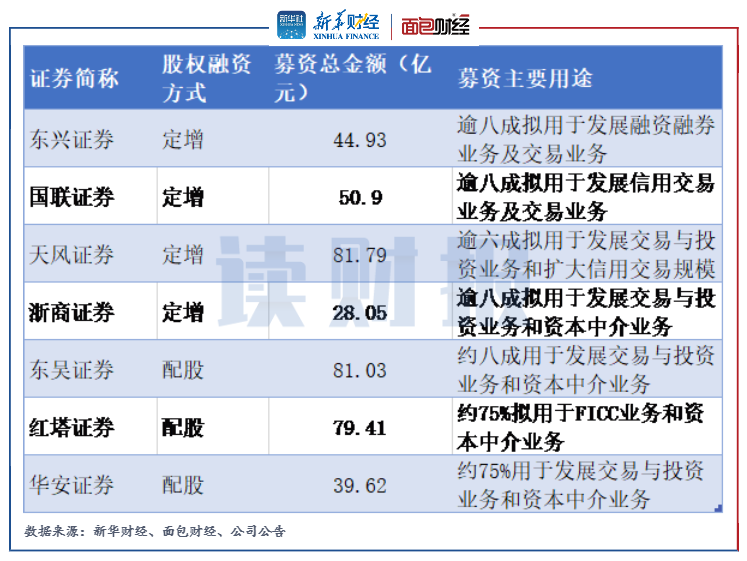 在當(dāng)前以凈資本為核心的風(fēng)險監(jiān)控與預(yù)警制度下,券商的凈資本規(guī)模成為反映其風(fēng)控能力的重要指標(biāo)之一。此外,傳統(tǒng)經(jīng)濟(jì)業(yè)務(wù)同質(zhì)化嚴(yán)重且傭金率下滑,也促使各大券商向資本中介、投資業(yè)務(wù)等資本消耗型業(yè)務(wù)轉(zhuǎn)型發(fā)展。2021年,多家上市券商通過定增和配股的股權(quán)融資方式“補(bǔ)血”。