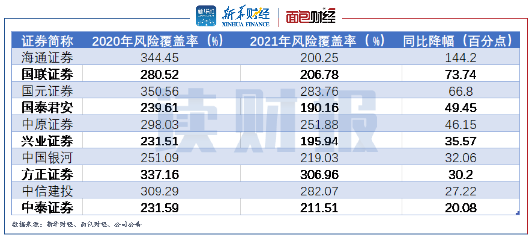 部分券商核心風(fēng)控指標(biāo)下滑較顯著