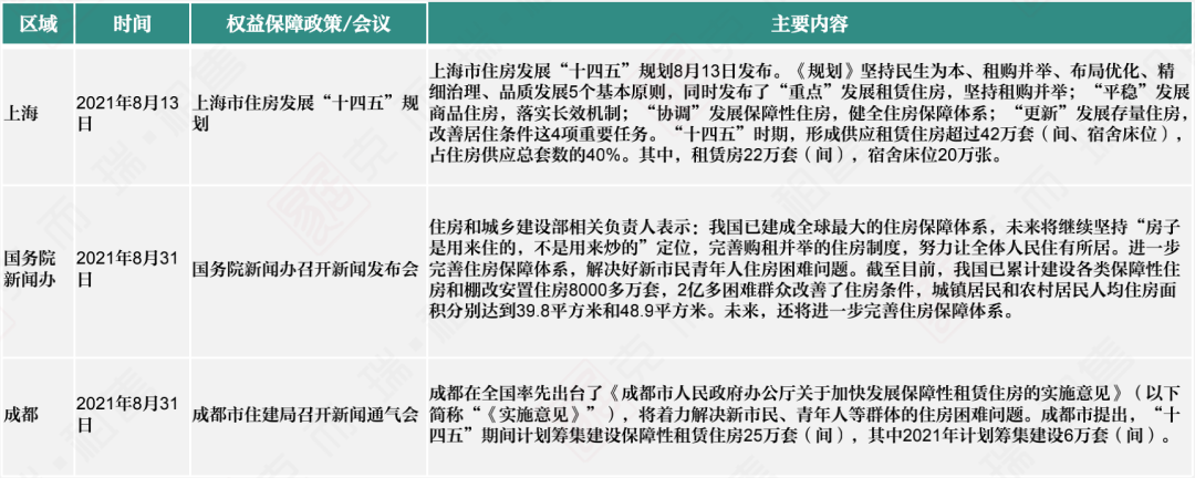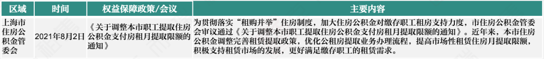 8月2日,上海率先發(fā)布《關(guān)于調(diào)整本市職工提取住房公積金支付房租月提取限額的通知》提高了市場性租賃住房月提取限額。隨后在上海發(fā)布的住房發(fā)展“十四五”規(guī)劃中,又提及了堅持民生為本、租購并舉、布局優(yōu)化、精細(xì)治理、品質(zhì)發(fā)展5個基本原則。