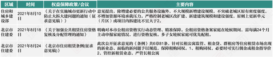 表:2021年8月租賃供應(yīng)相關(guān)政策