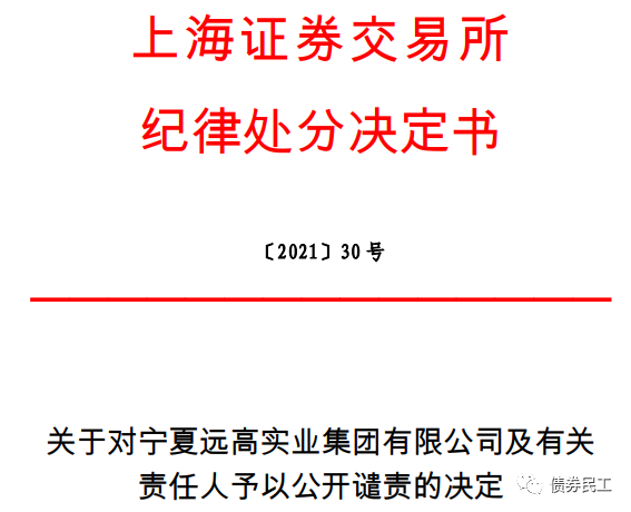 寧夏遠高實業集團有限公司(以下簡稱“遠高集團”)債券違約、實控人離境、信息披露嚴重違規等事項引發了上交所一系列的監管處分。2021年4月1日,上海證券交易所印發《關于對寧夏遠高實業集團有限公司及有關 責任人予以公開譴責的決定》,對遠高集團及高紅明、高遠 予以公開譴責。