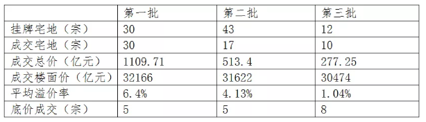 與前兩次集中供地的成交情況不同,三批次供地顯然“平穩”了很多:共掛出12宗地,7宗以底價成交,2宗以線上最高報價成交,1宗現場競拍。12塊土地成交10塊,有2宗土地流拍,第三批次的流拍率為16.7%。