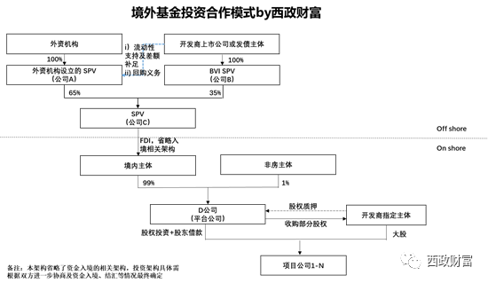 2.C公司通過外商投資的方式與開發(fā)商境內(nèi)非房主體共同成立D平臺公司。