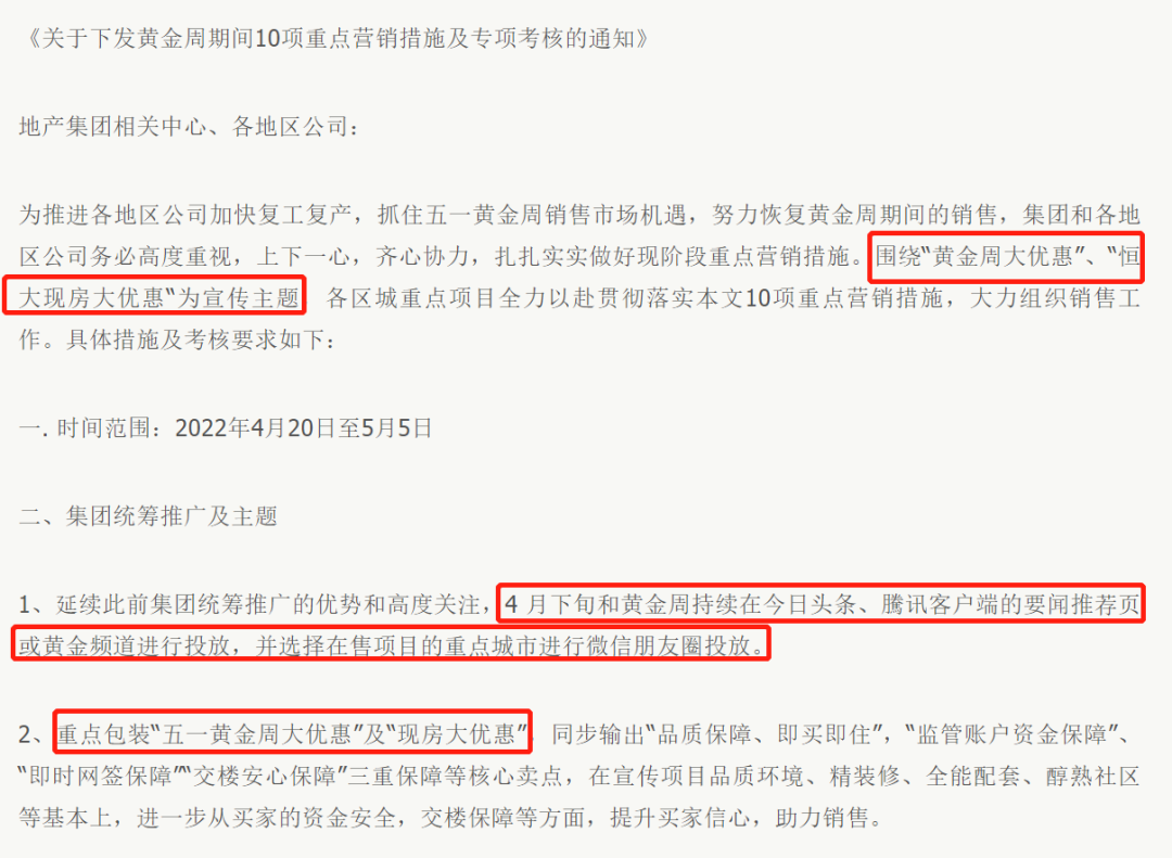 近期,恒大的一則五一黃金周的賣房活動開始出圈。