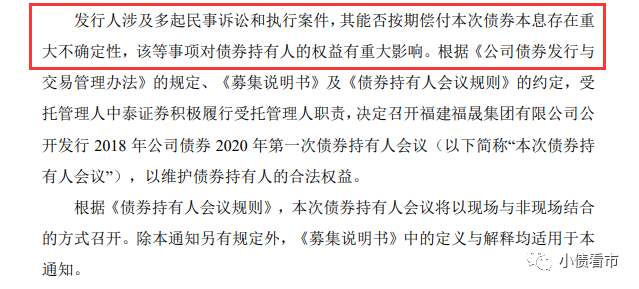 消息面上,10月13日中泰證券公告稱,由于福晟集團涉及多起民事訴訟和執(zhí)行案件,其能否按期償付“18福晟02”等多只債券存在重大不確定性,并擬召開持有人會議。