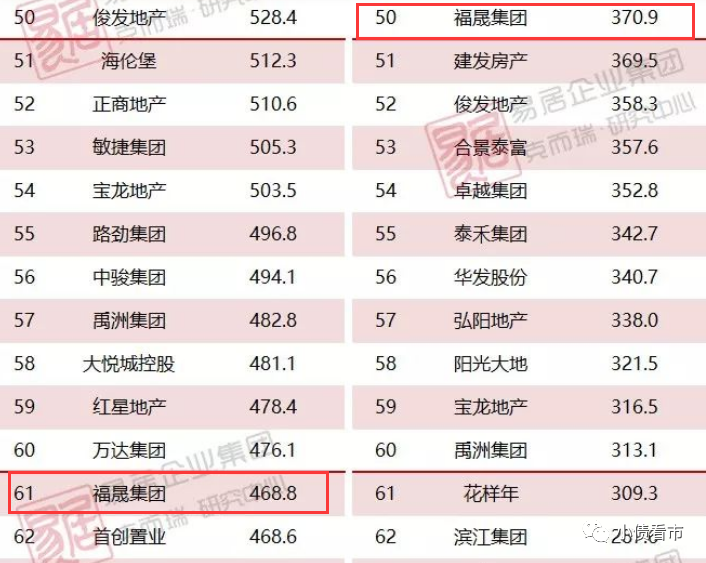 據(jù)克而瑞數(shù)據(jù)顯示,2019年福晟集團以468.8億操盤金額在房企中排名第61位;以370.9萬平方米操盤面積排名第50名,位于百強房企之列。