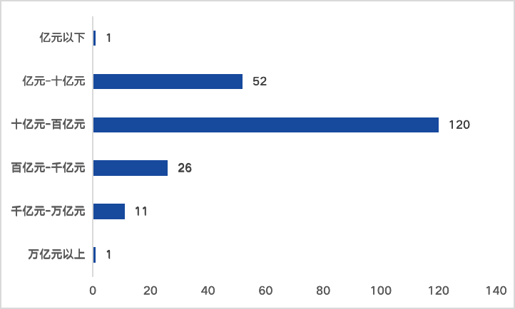 (三)近57%公司營收規(guī)模處在十億元到百億元之間