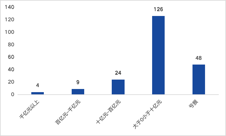(四)超60%公司凈利潤低于10億元,48家公司處于虧損狀態(tài)