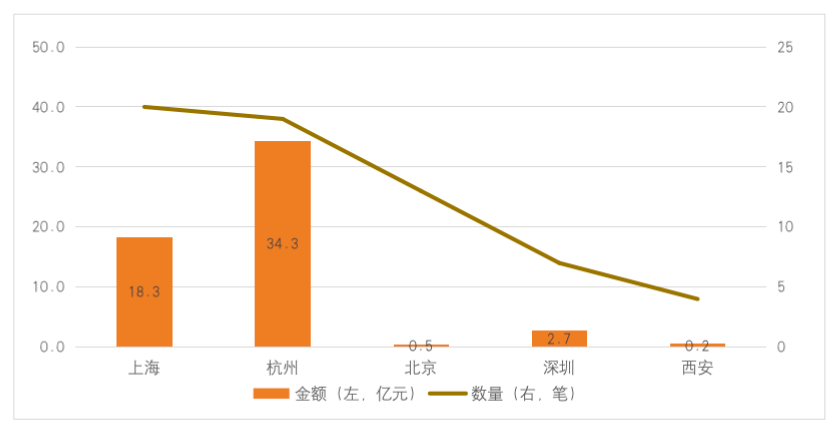 獲投隱私計(jì)算初創(chuàng)公司的注冊地主要在北京、上海和杭州3個(gè)城市,其次是深圳和西安。北京有7家公司獲得融資,但融資總額僅0.5億元;上海有7家公司獲得20輪融資,杭州有6家公司獲得19輪融資,二者融資總額分別為18.3億元和34.3億元。杭州互聯(lián)網(wǎng)基因強(qiáng)大,同盾科技、趣鏈科技等數(shù)據(jù)服務(wù)類公司起步早、發(fā)展快,整體發(fā)展更為成熟。
