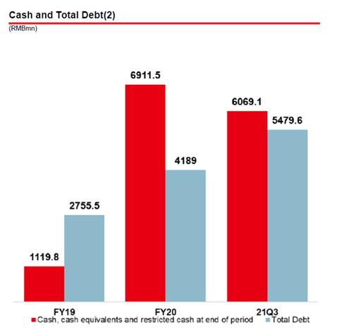截至2021年9月30日,公司經(jīng)營(yíng)性現(xiàn)金流為60.69億元,整體負(fù)債率約35.4%,保持行業(yè)低位水平。