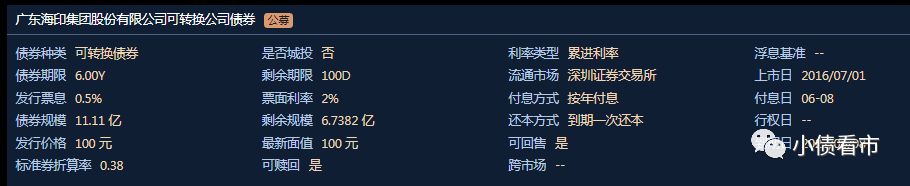 《小債看市》統(tǒng)計,目前海印股份僅存續(xù)一只“海印轉(zhuǎn)債”,存續(xù)規(guī)模6.74億元,將于2022年6月8日到期。