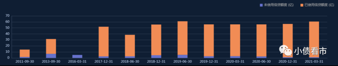 在備用資金方面,截至2021年3月末,海印股份銀行授信總額有60.61億元,未使用授信額度為1.14億元,可見其財務(wù)彈性欠佳。