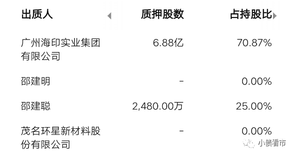 截至2022年2月11日,海印股份控股股東海印集團質(zhì)押公司股份數(shù)量6.88億股,占其持有股份的70.87%,質(zhì)押比例較高。