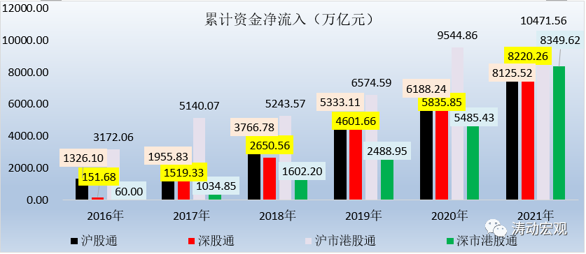 3、北向通累計資金凈流入分別達到1.63萬億,全年流入首次超過南向通