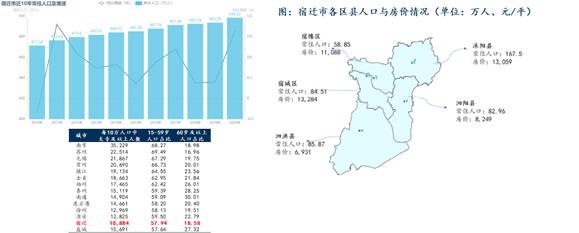 但換個角度來看,宿遷目前債務(wù)負(fù)擔(dān)在省內(nèi)處在一個相對較低的水平,存在一定的舉債空間,另外依托洋河和京東的布局,以及宿遷經(jīng)開區(qū)的產(chǎn)業(yè)生態(tài),地方經(jīng)濟(jì)有一定基本盤支撐,再加上承接蘇州產(chǎn)業(yè)轉(zhuǎn)移,整體產(chǎn)業(yè)的發(fā)展有一定推動力,在淮海經(jīng)濟(jì)圈仍有不錯的競爭力,近10年人口尚可保持緩慢的凈流入。