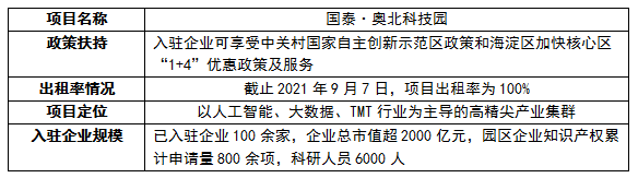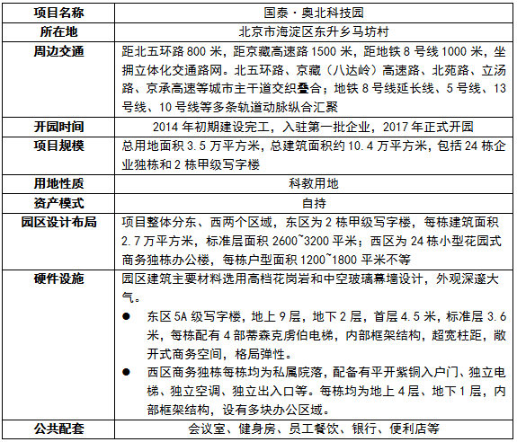 國泰·奧北科技園區(qū)基本情況表