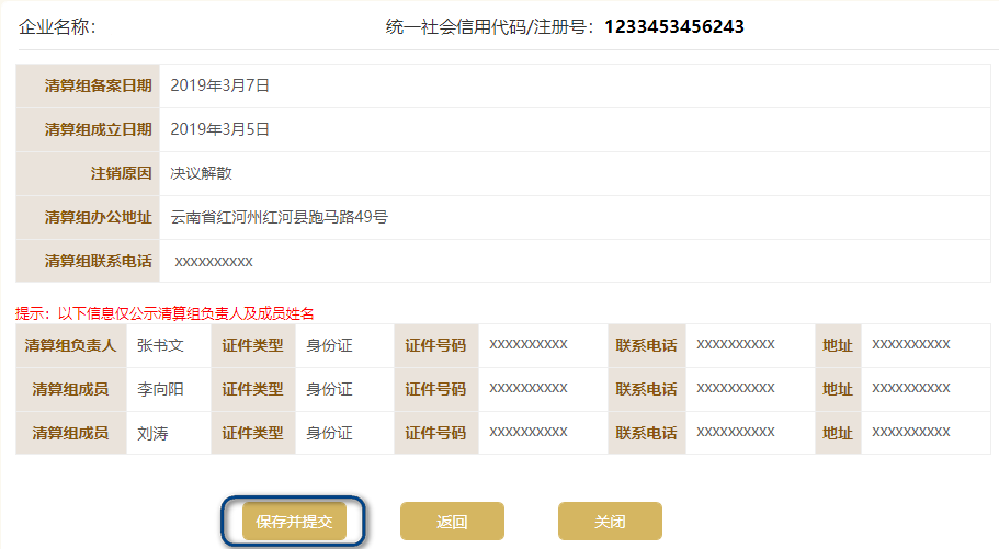 3.4確認無誤后,點擊“確認撤銷”,完成撤銷清算組備案。