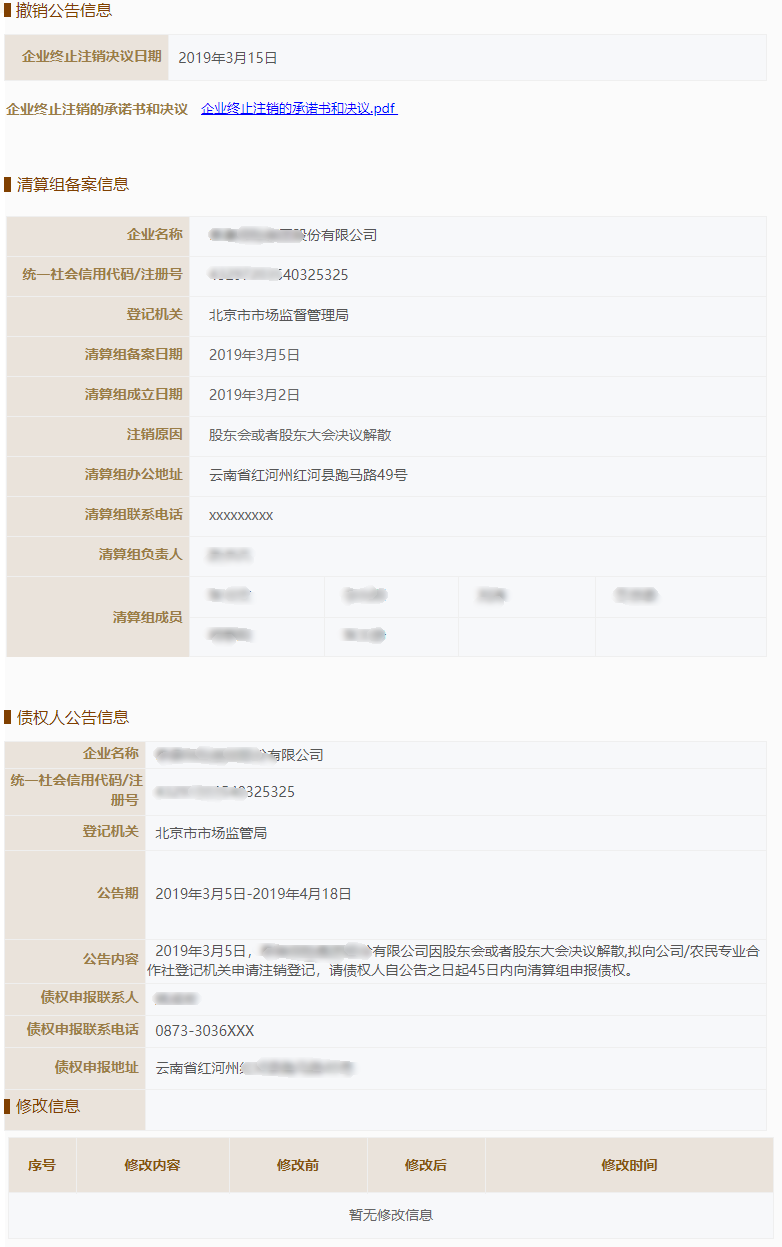 5.2在企業信息頁面,標注“正在進行債權人公告,公告期:XX年X 月X日- XX年X 月X日”