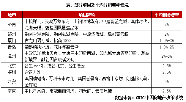 另外需要關(guān)注的是春節(jié)期間,渠道成交套數(shù)減少,部分房企調(diào)整分銷政策,傭金費率下降。過去低迷的市場行情之下,渠道是房企營銷去化的最核心手段之一。然而這個春節(jié)期間,一方面市場下行壓力大,購房者信心不足,另一方面也受假期影響,不少地方渠道成交的效果出現(xiàn)了不同程度的下降。根據(jù)CRIC的調(diào)研,鄭州、重慶、無錫等城市渠道分銷效果有不同程度的下滑。并且在傭金點數(shù)上,由于12月底,房企搶收業(yè)績部分項目傭金點數(shù)提升,春節(jié)期間開始逐步回調(diào),鄭州融創(chuàng)由過去的3-5個點下降了一半到1.5-2個點左右。無錫的項目也普遍從4-5個點下降至2-2.5個點左右,濟南等城市分銷力度也都有所回調(diào),傭金費率恢復(fù)到2%左右的正常水平。