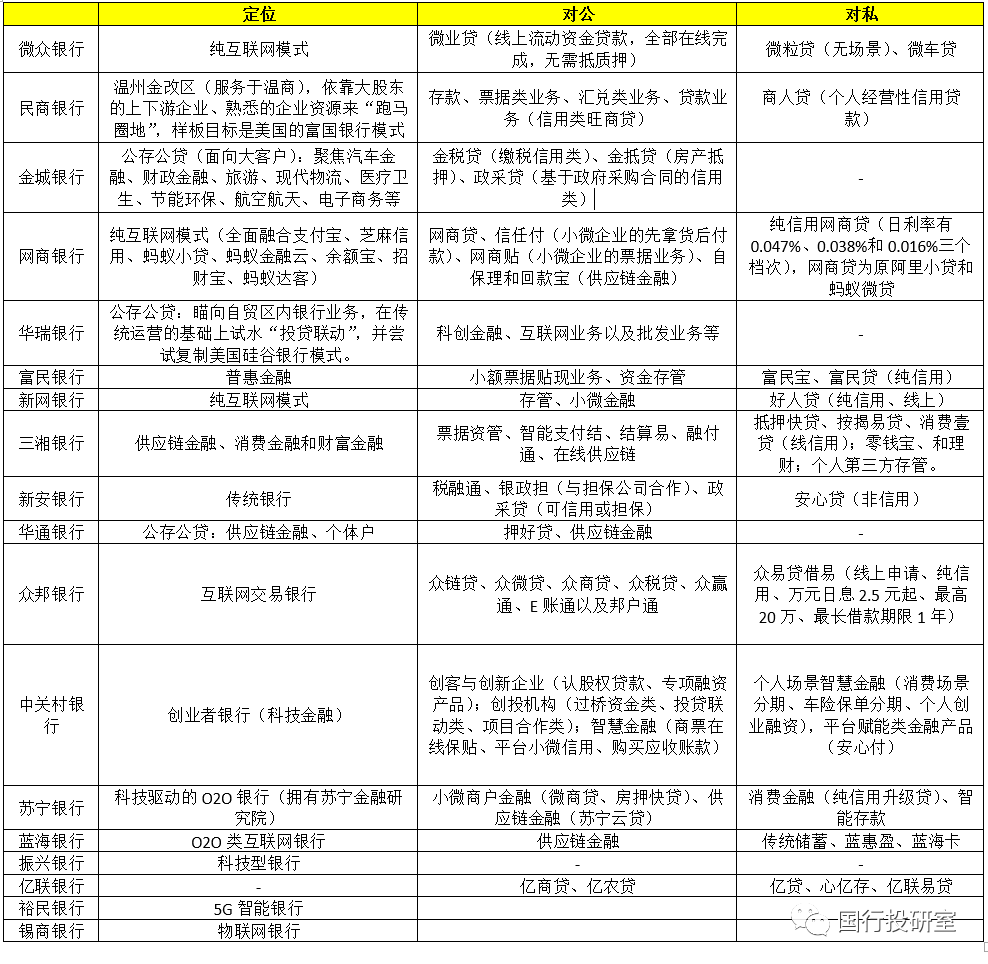 七、附件:19家民營銀行業務模式與產品類型匯總