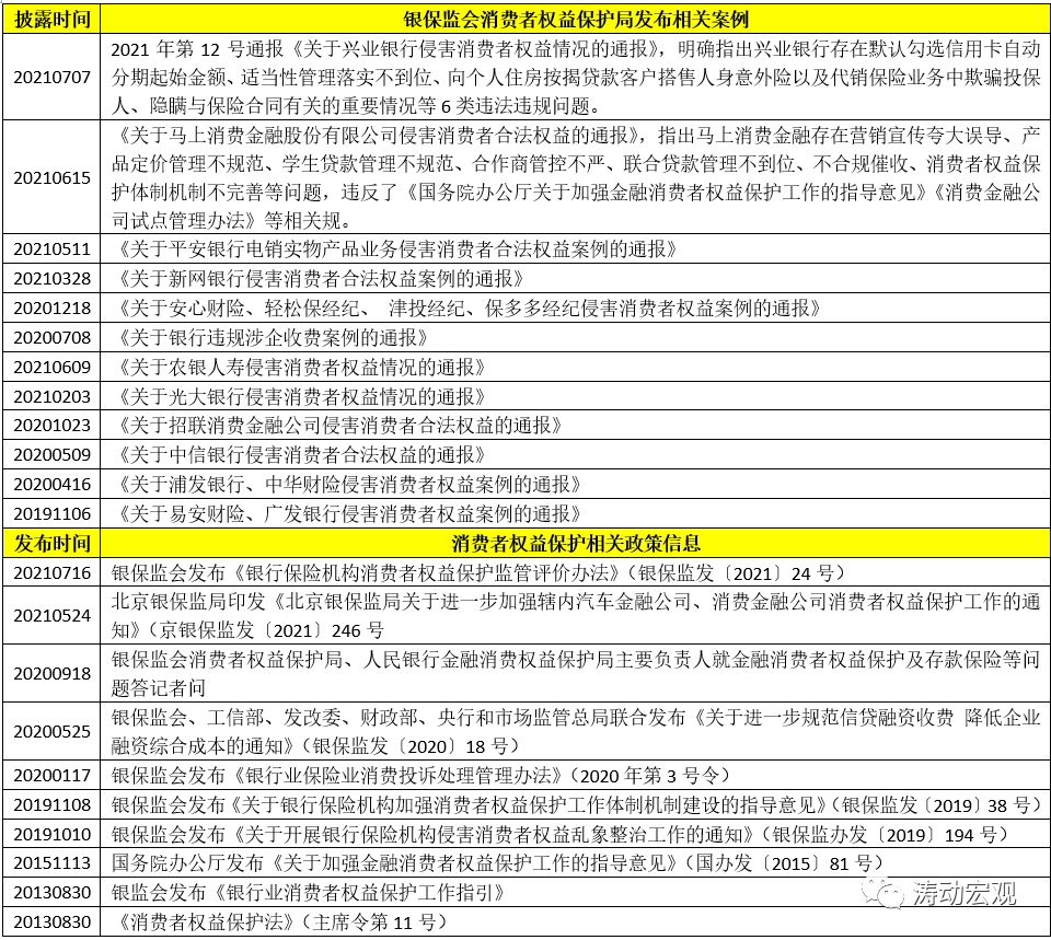 2020年10月、2021年3月與2021年6月銀保監會官網相繼通報了招聯消費金融、新網銀行與馬上消費金融等三家機構侵害消費者權益的案例,相關問題集中在夸大及誤導宣傳、合作商管控不力、收費及定價不合理等等。具體看,