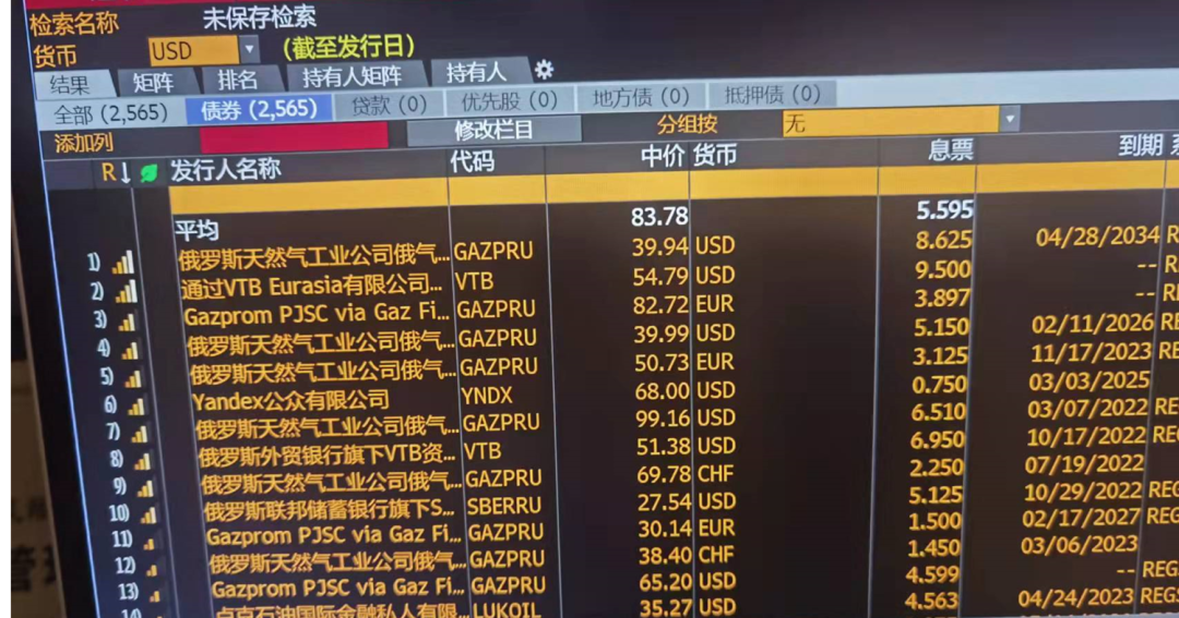 隨著西方國家切斷swift連接和出口限制等一系列制裁手段的出爐,俄羅斯中石油中石化(Rosneft&Gazprom),還有俄羅斯宇宙行(Sberbank)的以美元計價的債券價格已經(jīng)下跌到30元左右的垃圾級水平。