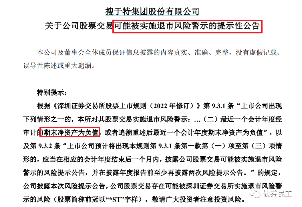 廣州高新投持有搜于特8.06%股份,為搜于特第二大股東。根據搜于特2022年3月12日披露的公告,由于預計公司2021 年末凈資產為負值,公司存在可能被實施退市風險警示的風險。
