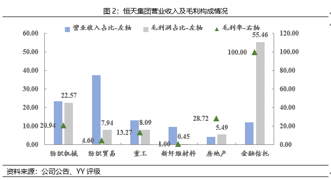 紡織貿(mào)易營(yíng)收占比高,但毛利率很低,凈利潤(rùn)表現(xiàn)為虧損狀態(tài),且存在回款風(fēng)險(xiǎn)。公司毛利潤(rùn)主要來自金融信托和紡織機(jī)械業(yè)務(wù),分別占比61.17%、24.01%,詳細(xì)情況參見圖2。