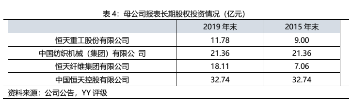 新型纖維材料是公司拓展的新業(yè)務(wù),與紡織機(jī)械業(yè)務(wù)有協(xié)同效應(yīng),但開發(fā)成本較大、常規(guī)產(chǎn)品產(chǎn)能過剩,盈利能力不穩(wěn)定,截至2019年末資產(chǎn)規(guī)模68.0億元,2019年實(shí)現(xiàn)凈利潤(rùn)凈2.4億元;房地產(chǎn)業(yè)務(wù)較為穩(wěn)定,截至2019年末,共有6個(gè)在售房地產(chǎn)項(xiàng)目,截至2020年3月末,共有5塊未開發(fā)土地,對(duì)營(yíng)業(yè)收入形成補(bǔ)充;投資業(yè)務(wù)方面,恒天投資主要負(fù)責(zé)為集團(tuán)內(nèi)各子公司進(jìn)行股權(quán)投資業(yè)務(wù),恒天控股為集團(tuán)境外融資及資本運(yùn)作平臺(tái)。
