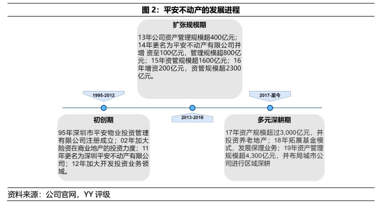 得益于平安集團業(yè)務(wù)的擴張,平安不動產(chǎn)的管理規(guī)模也相應(yīng)倍增,自13年的400億元上升至19年末的4,300億元,并布局了保理業(yè)務(wù)、物流地產(chǎn)和養(yǎng)老地產(chǎn)等多元業(yè)態(tài)。