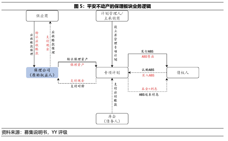 目前平安不動產(chǎn)的保理業(yè)務(wù)主要由深圳市前海平裕商業(yè)保理有限公司開展。現(xiàn)階段商業(yè)保理公司主要依賴其股東進行融資,而平安不動產(chǎn)背靠中國平安長久期、低成本的銀彈支持之下,則無后顧之憂,僅需聚焦在結(jié)構(gòu)化分層時的差額支付承諾風險。19年末、20年中,平安不動產(chǎn)的應(yīng)收賬款融資分別為7.76億元和39.32億元,即保理業(yè)務(wù)增長所致,也反映了相應(yīng)的風險。