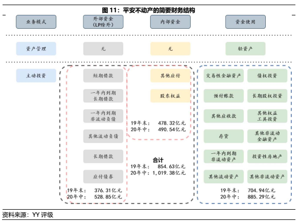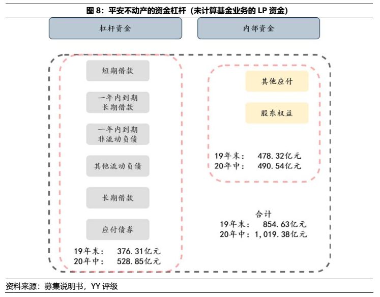 根據(jù)平安不動產(chǎn)20年中報公示的主要債權(quán)投資(未完全披露)收益5.90%,經(jīng)扣除平安不動產(chǎn)相關(guān)投后管理費用和成本費用,恐怕無法有效覆蓋資金成本。因此,布局股性地產(chǎn)投資業(yè)務(wù)和充份運用杠桿成為了平安不動產(chǎn)提升收益率的必要手段。