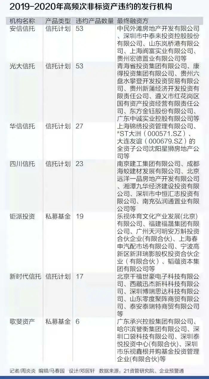 由資管研究院統計的2019~2020年發生的非標資產違約的數據中,是一個動態的過程。