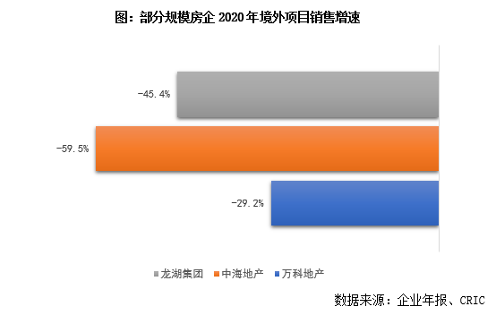 其一,2020年受疫情影響,房企境外項目的銷售業(yè)績呈顯著下滑。其中,中海地產(chǎn)境外項目銷售金額由2019年的111.89億元降至45.3億元,同比下降59.5%;萬科境外項目銷售金額同比下降29.2%,境外項目銷售金額占比由2019年的0.14%降至0.08%;此外,綠地2020年海外項目因疫情影響,銷售周期和開發(fā)周期進(jìn)一步拉長,導(dǎo)致成本增加及折現(xiàn)時間加長,共計提跌價減值損失9.91億元。