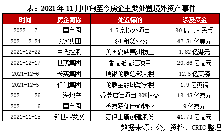 同時,“三條紅線”融資監(jiān)管持續(xù),房企一方面面臨境外債償付壓力,另一方面融資規(guī)模受限,借新還舊操作空間有限,“雙面夾擊”下現(xiàn)金流動性壓力攀升。在此背景下,房企處置部分境外資產(chǎn)得以緩解流動性壓力,以及境外債兌付壓力。