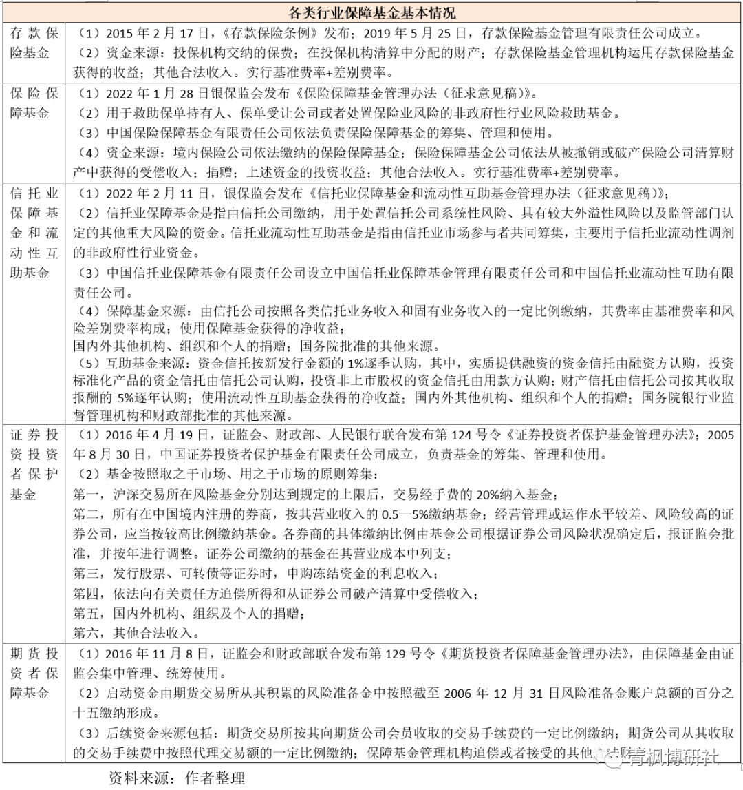 三、目前國內(nèi)行業(yè)保障基金情況簡述