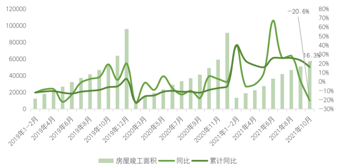 單月來看,10月全國新開工面積13792萬平方米,環比下降21%。同比降幅較9月大幅擴大19.6pct至33.1%,規模創2020年以來新低。民營開發企業在銷售回款難和融資借款難的雙重困境下,無力繼續新開工項目。