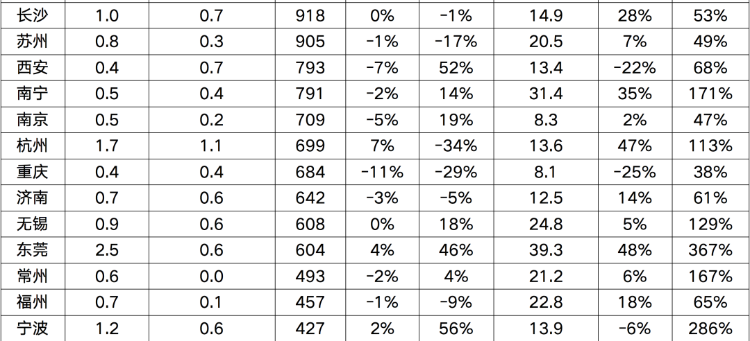 部分疫情控制較好的城市市場筑底企穩(wěn),例如海口成交同比跌幅收窄至3%,又如西安成交放量,同比增長32%。壓力城市在救市政策落地后市場確有回溫,但持續(xù)時間較短。典型如鄭州,上半月成交明顯回升,但由于樓市供遠大于求,下半月成交再度下滑。
