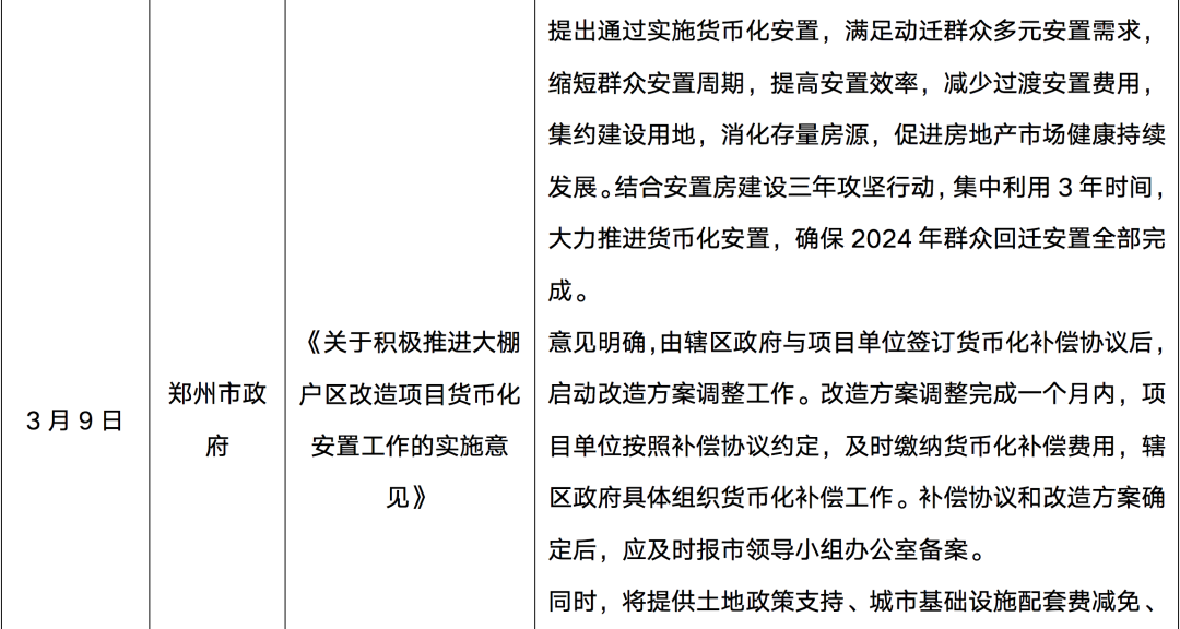 其六,鄭州實施安置房建設(shè)工作三年行動,堅持以貨幣化安置為主。