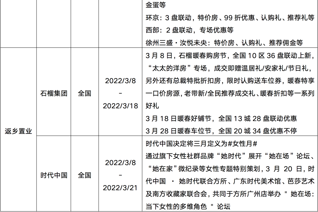 表:2022年3月108家監(jiān)測企業(yè)亮點營銷情況表
