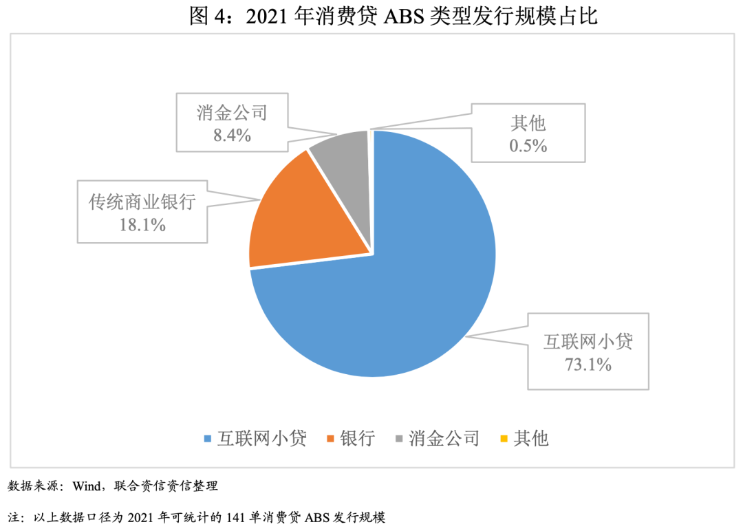 3、互聯(lián)網(wǎng)小貸平臺仍是消費貸ABS發(fā)行主力