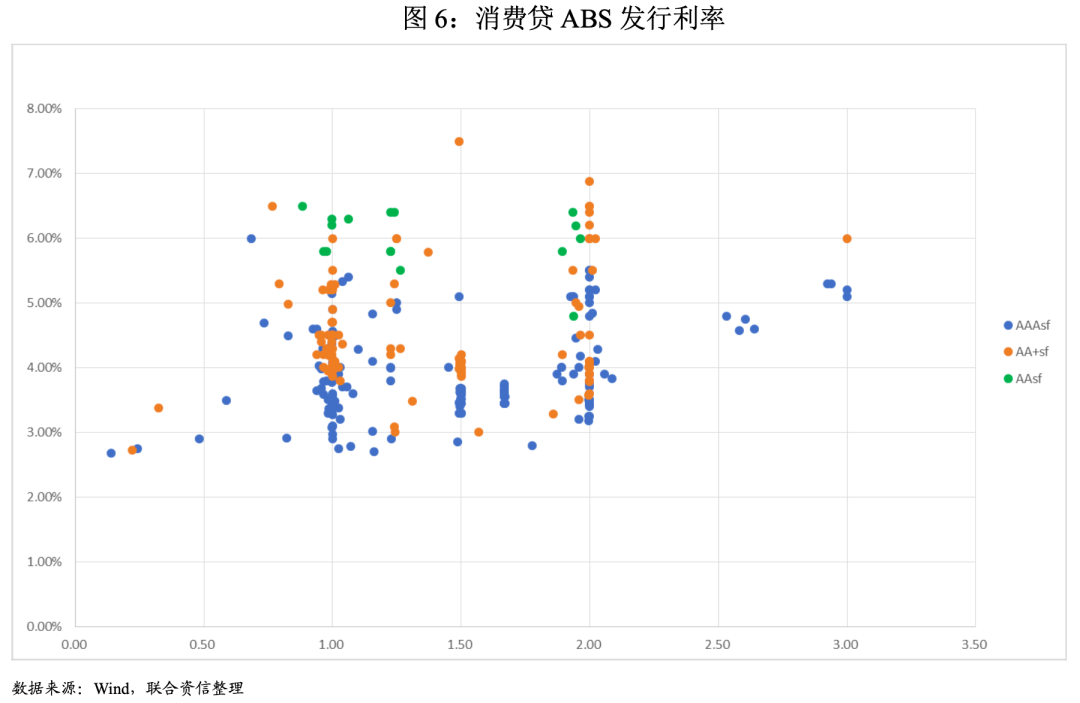 5、消費貸ABS發(fā)行利率分化明顯,利差較大,具有較好的投資價值