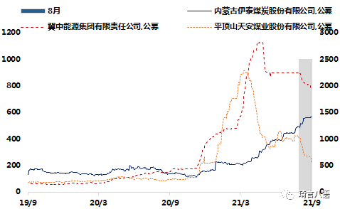 第三,8月煤價(jià)突破季節(jié)性限制,強(qiáng)勢上漲,9、10月份冬儲需求旺盛,煤價(jià)大幅下跌概率不大: