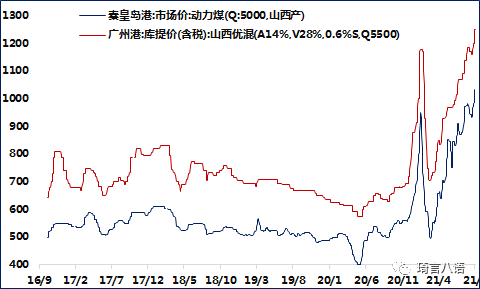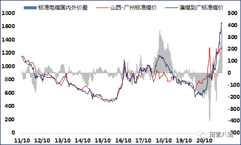 第四,海內(nèi)外電煤價(jià)差倒掛且處于歷史高位,今年進(jìn)口額度不僅沒有如往年成為限制煤價(jià)上漲的手段,高進(jìn)口煤價(jià)反而對國內(nèi)煤價(jià)形成強(qiáng)支撐: